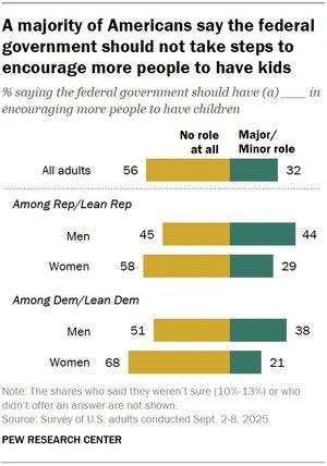 Pokud jde o otázku, zda by vláda měla podniknout více kroků k povzbuzení lidí, aby měli děti, existuje větší propast mezi pohlavími než mezi stranami.