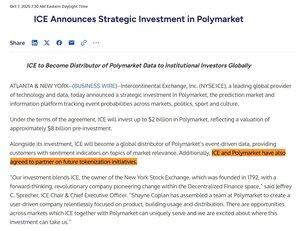 JUST IN: 🇺🇸 NYSE se asociará con Polymarket en futuras iniciativas de tokenización.