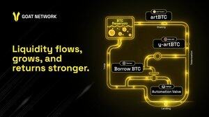 Su GOAT Network, un BTC può muoversi attraverso un ciclo: • Stakare BTC in Artemis per artBTC • Usare artBTC in Stable Jack per coniare y-artBTC e amplificare i rendimenti • Mettere y-artBTC in Sumer come garanzia per prendere in prestito BTC • Far fluire il BTC preso in prestito di nuovo ad Artemis per riavviare il ciclo • DeSyn può automatizzare il ciclo e mantenere il flusso fluido.
