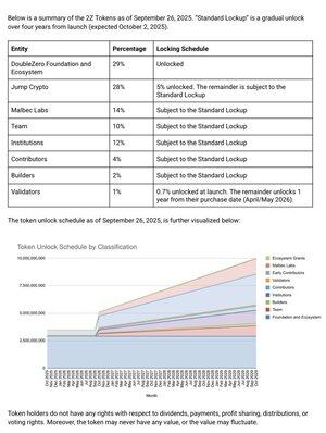 DoubleZeroのトークノミクスステータスが本日Upbitに上場される - いろいろあるが、ただ見れば新進チームやVCなどインサイダーの分量だ。 - 本日リリースされる金額は、Foundation、Ecosystem、JUMP、Validatorです。 トークンの割り当て 1. 基盤とエコシステム: 29% の割り当て、100% の即時ロック解除 * 基礎ボリューム = チームボリューム 2. ジャンプ クリプト: 28% の割り当て、即時ロック解除後の 5% の権利確定 ※VCがプロジェクトに貢献 3. マルベック研究所: 14% の割り当て * 共同創設者の回答: DoubleZero プロジェクトに取り組んでいる 2 つの Labs チームのうちの 1 つ *事実上チームボリューム 4. チーム: 10% * はいチーム 5.機関:12% * VC、投資家 6. 貢献者: 4% *投稿者。。一般的に寄稿者もチームボリュームと考える。 7.ビルダー:2% *開発者ははは 8. バリデーター: 1% : 0.7% 即時ロック解除と権利確定 * バリデーターはい @doublezero @Official_Upbit