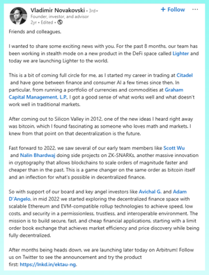 Venner og kolleger, Jeg ønsket å dele noen spennende nyheter med deg..... @Lighter_xyz @vnovakovski