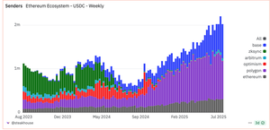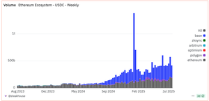 @base @ethereum 4/USDC-saldoen forblir på Ethereum og deretter Base (med høyt volum på Base). Men @0xPolygon knuser det når det gjelder brukere.