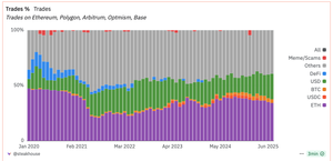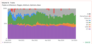 @base 2/ Dex-handelen er også oppe, med mesteparten av aktiviteten på @base, men volumkongen er fortsatt @ethereum