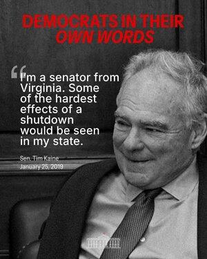 "Jeg er en senator fra Virginia Noen av de hardeste effektene av en nedleggelse vil bli sett i staten min." - Senator Tim Kaine