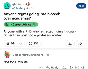 Czuje się, jakby każdy post, który widzę na temat przechodzenia z akademii do przemysłu, brzmiał: „tak, akademia jest do niczego, 100%”