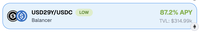 2️⃣ Emparelhe USD29Y + USDC no Balancer para cultivar 87% APY no pool.
