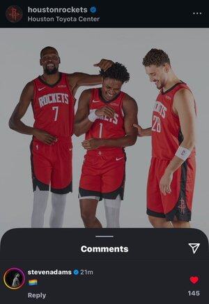 Comentário de Steven Adams sobre esta foto de KD, Amen e Sengun: