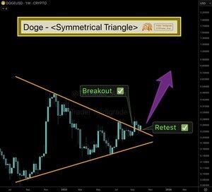 #Dogecoin завершил симметричный треугольник на недельном графике, произошел прорыв и повторное тестирование ✅