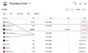 Founders Fund 今年出手次数很少,但凡出手的都是难得一遇对社区友好的项目。 Avantis 对了一次,Plasma 又对了一次。 Founders Fund 今年一共就投了5个项目,剩余的3个目前均尚未发币。 它们分别是: 稳定币协议 @ubyx_ AI 计算协议 @PrimeIntellect 模块化infra @AltiusLabs 其中 @PrimeIntellect 和 @AltiusLabs 均由Founders Fund 领投。找找角度参与进去。