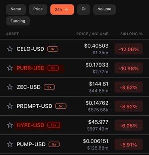HYPE 和 PURR 是今天表现最差的前 5 种币之一