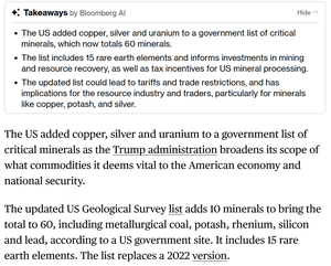 If "USD dominance" is still a strategic asset, why would the US govt be adding copper, silver, uranium, met coal, potash, lead & other minerals to a list of critical minerals?